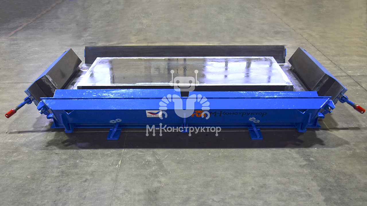 В основание такого типа металлоформ устанавливается силовая рама или поддон: именно она несет на себе остальные составляющие. В первую очередь – это формующая поверхность высокой плоскостности, а также массивные борта, особенно продольные, выполненные подвижными. Открытие и закрытие бортов обеспечивают поворотные механизмы – шарниры, соединяющие борта с поддоном.
