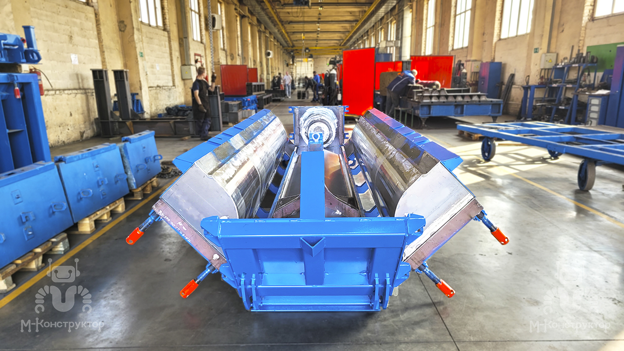 Металлоформа, разработанная заводом «М-Конструктор», позволяет выпускать изделия двух типов: ТСС – оголовок (верхняя часть) выполнен с внутренней цилиндрической полостью под установку железобетонной стойки контактной сети, и ТСА — сплошное основание с анкерным креплением консольных стоек.