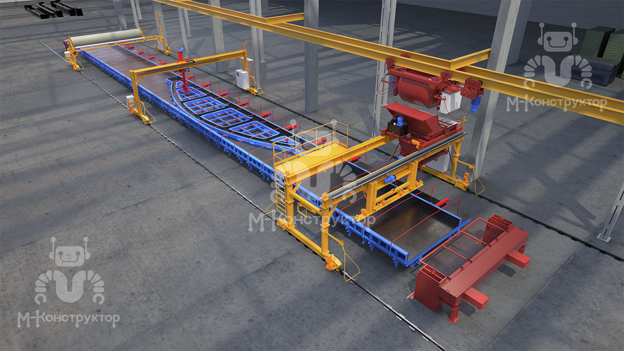 На любом заводе ЖБИ есть оборудование, вокруг которого выстраивается весь технологический процесс. В нашем проекте – это линия формования – основа, без которой невозможна ни работа размотчика, ни заглаживающего вертолета, ни адресной подачи, о которых мы писали ранее, а в настоящее время идет монтаж всего вышеперечисленного оборудования «М-Конструктор» на производственных площадях заказчика за пределами России. Подачу бетонной смеси будет осуществлять портальный бетоноукладчик, о нем в следующих публикациях, а сегодня расскажем о технических особенностях формующей поверхности, но сначала вернемся к заголовку.